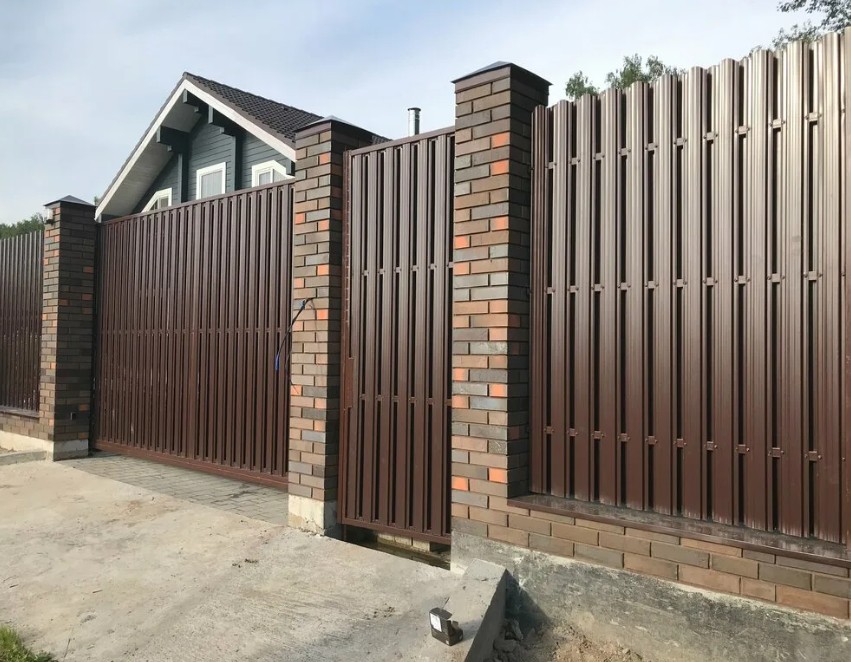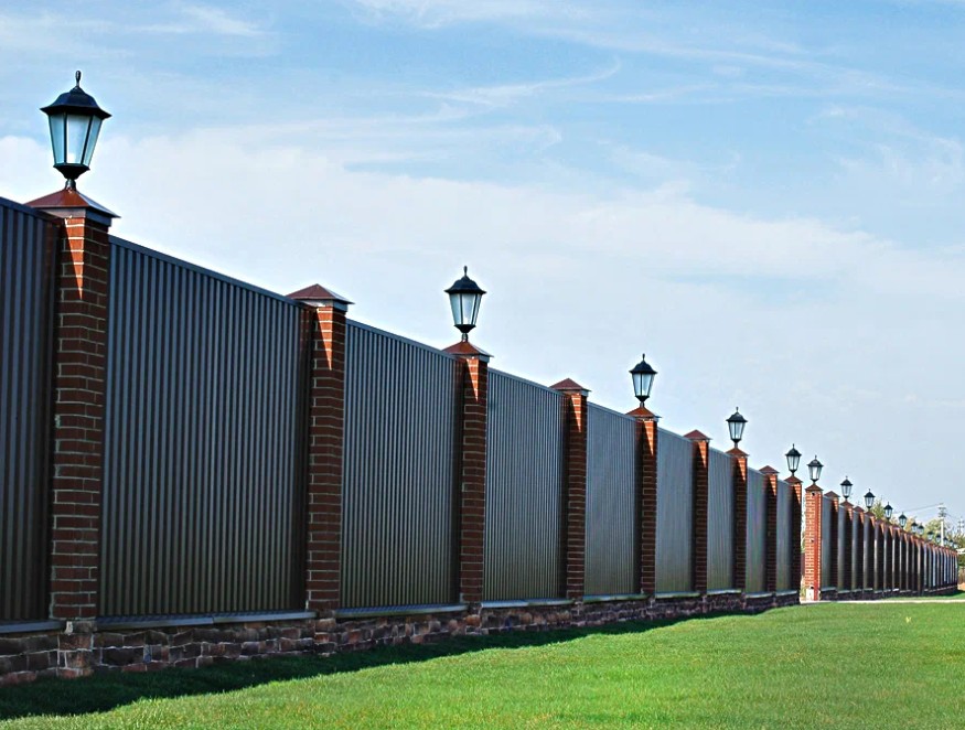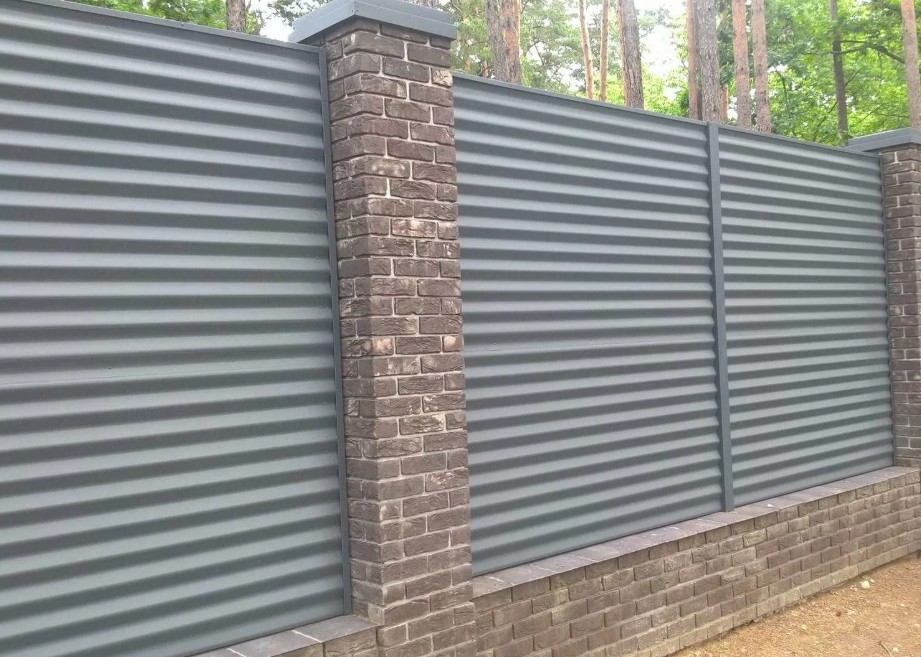 Ограждения из профнастила и профильной трубы дешевле кирпичных и бетонных, при этом не уступают им по функциональности.