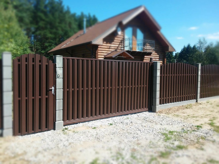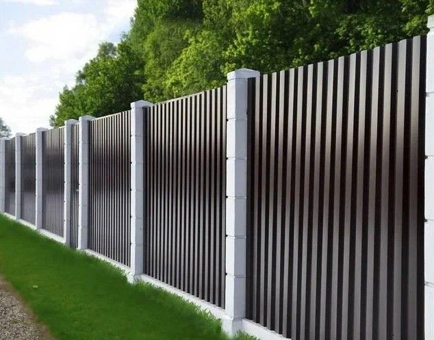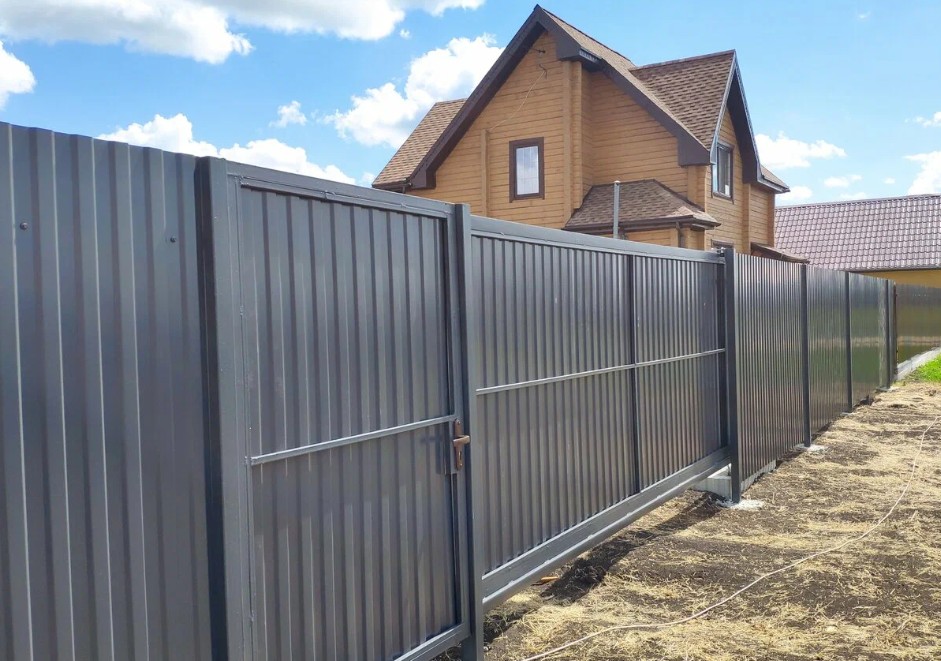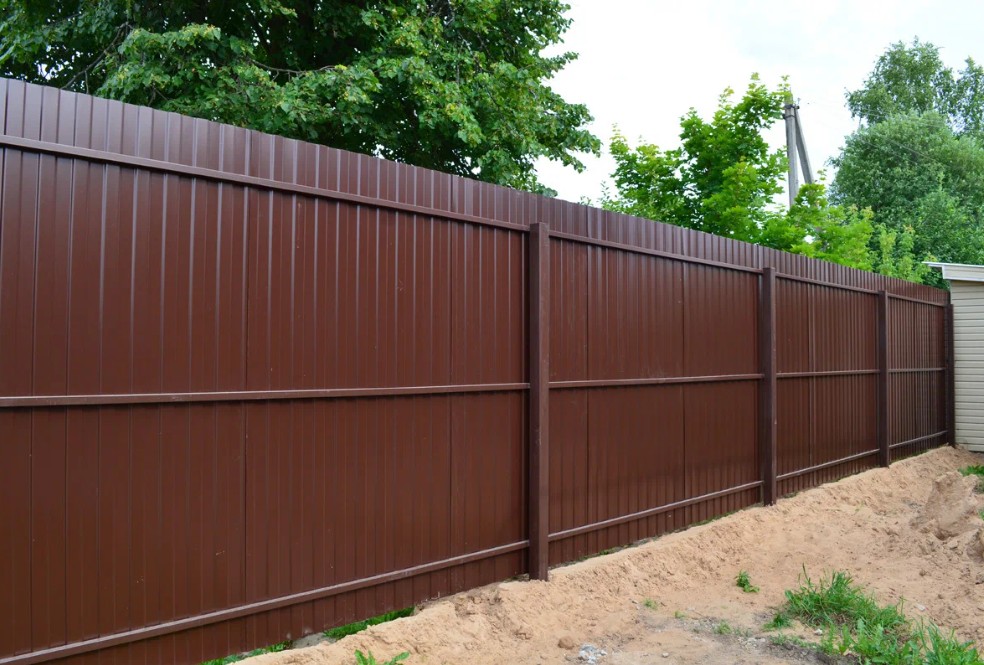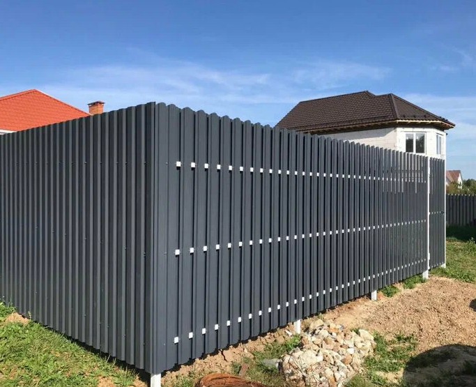 Профнастил выпускается в разных цветах и фактурах, что позволяет подобрать забор под стиль участка или дома.